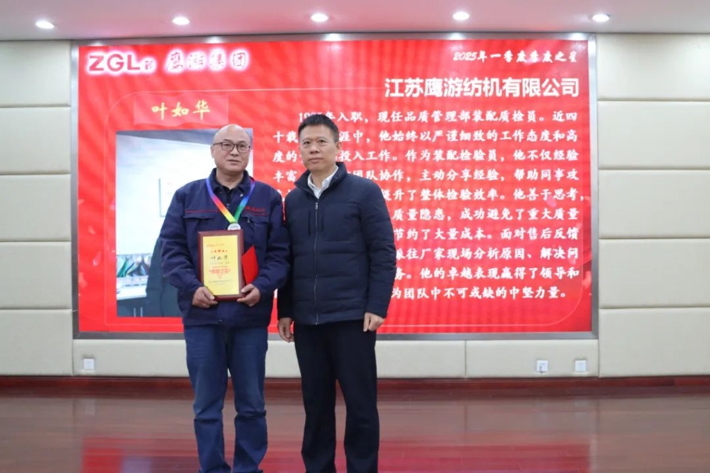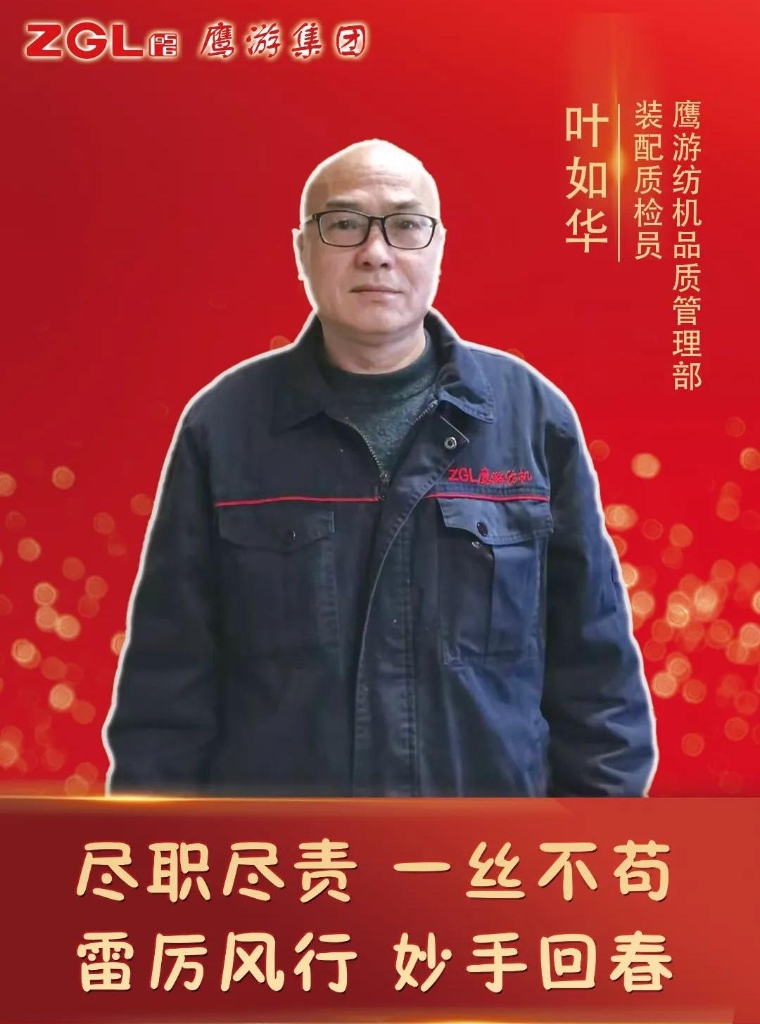 葉如華同志自1985年入職江蘇鷹游紡機有限公司以來,始終堅守在品質管理部裝配質檢崗位上,以高度的責任感和精湛的專業技能,為公司產品質量保障工作做出了突出貢獻。